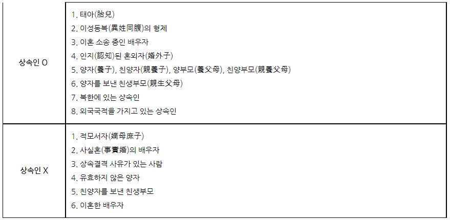 이처럼 상속인이 될 수 있는지 없는지는 아래와 같이 요약될 수 있습니다.