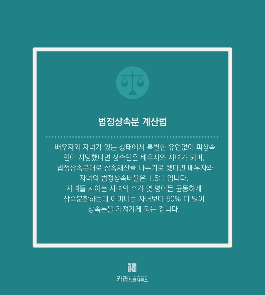 이번 시간에는 법정상속분에 대한 계산법에 대해 알아보도록 하겠습니다.