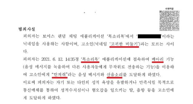 그런데 이로부터 약 4달의 시간이 흐른 뒤 어느 날, A씨는 경찰로부터 "누군가가 '목소리톡'에서 A씨의 메아리를 받고 성적 수치심을 느꼈다며 고소를 하여 조사를 받아야 한다"라는 전화를 받게 되었습니다.