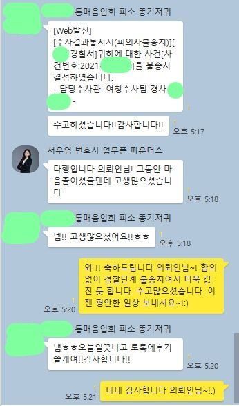 최종 무혐의(불송치)처분을 받을 수 있었습니다.