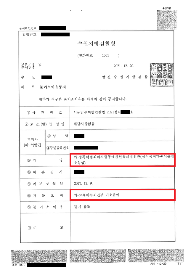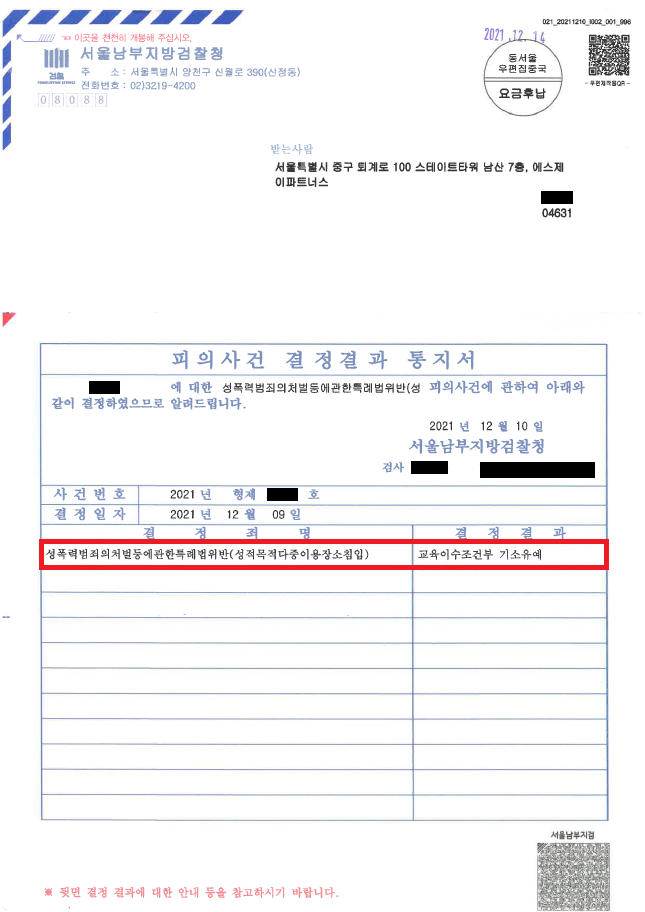 이러한 저의 조력을 바탕으로 A씨는 여자화장실에 수차례 침입하였음에도 불구하고 '기소유예' 처분을 받음으로써 공무원의 꿈을 포기하지 않을 수 있었을 뿐만 아니라 성범죄 전과자가 되지 않을 수도 있었습니다.