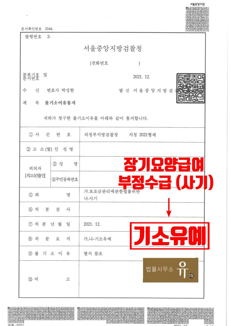의정부지방검찰청 고양지청은 법률사무소 유(唯) 형사전문변호사가 제출한 변호인의견서와 양형자료를 참작하여 피의자(의뢰인)에 대해 기소유예 처분을 하였습니다.