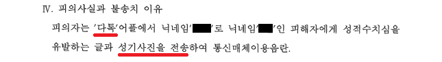 그런데 얼마 뒤, A씨는 경찰로부터 "B씨가 '다톡'에서 A씨로부터 성기사진을 받고 성적 수치심을 느꼈다며 고소를 하여 조사를 받아야 한다"라는 전화를 받게 되었습니다.