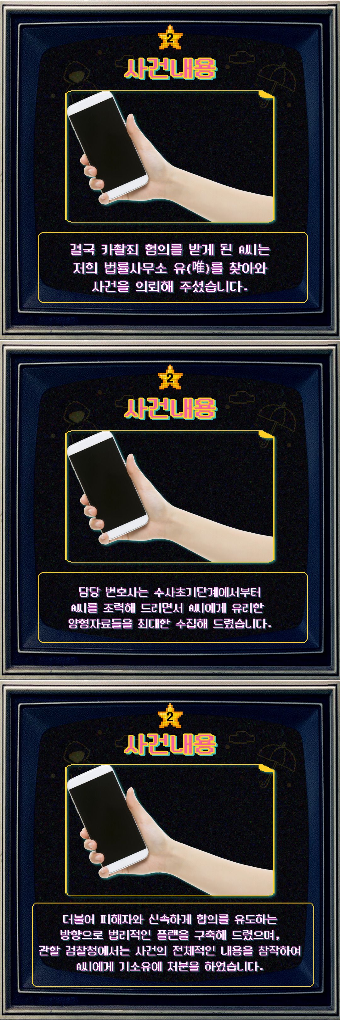 법률사무소 유(唯)의 형사전문변호사는 의뢰인과의 신속한 상담을 통해 사건의 경위 등을 정확하게 파악한 후 수사초기단계부터 의뢰인을 조력하면서, 의뢰인에게 유리한 양형자료를 최대한 수집하여 양형사유와 함께 의뢰인이 의도치 않게 우발적으로 범행에 이르게 된 사정 등을 상세하게 작성한 변호인의견서를 제출하고 신속하게 피해자와의 합의를 유도하였습니다.