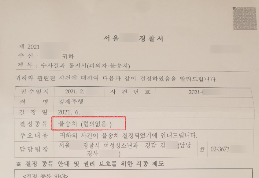 경찰의 혐의없음 불송치 결정을 받은 사례를 소개하고자 합니다.