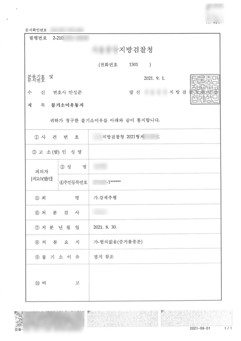 불기소 처분 - 혐의없음(증거불충분)