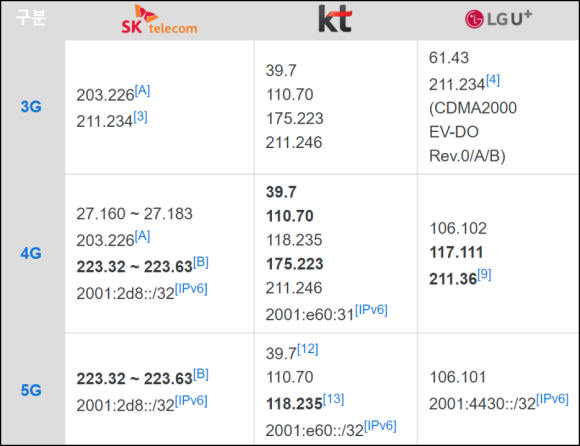 아래 사진에서 볼 수 있듯이, 223.32 , 39.7, 1118.235, 117.111 등은 대표적으로 추적이 어려운 통신사 IP라고 보시는 것이 좋습니다.