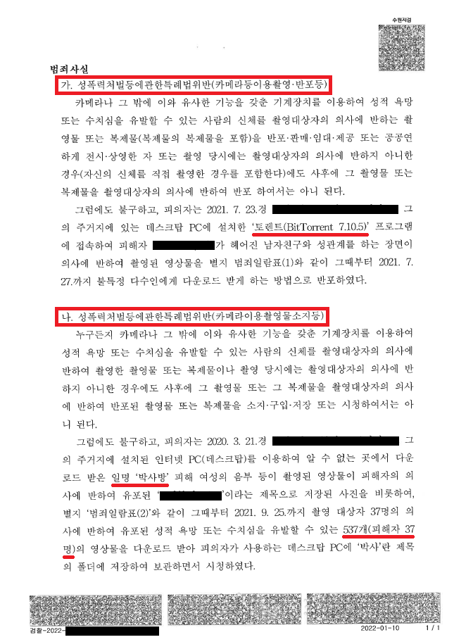 그런데 이로부터 약 4개월의 시간이 흐른 뒤 어느 날 가족들이 아무도 없는 시간에, A씨는 토렌트에서 '얼굴유출 고화질'이라는 제목의 불법 촬영물을 다운로드 및 유포한 혐의로 압수·수색 영장을 집행당하게 되었습니다.