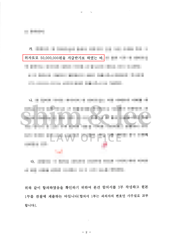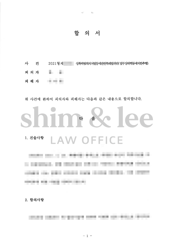 결과적으로 업무상 위력 추행 사건 중에서 매우 높은 수준인 5,000만 원으로 합의하여 사건을 마무리할 수 있었습니다.