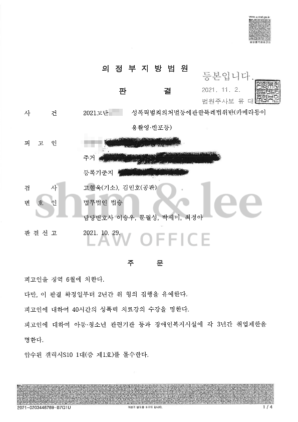 결국 가해자는 수사 초기에만 촬영한 적이 없다고 부인하다 경찰의 추궁에 자백할 수밖에 없었으며, 재판 단계부터 합의를 요청해왔습니다.
