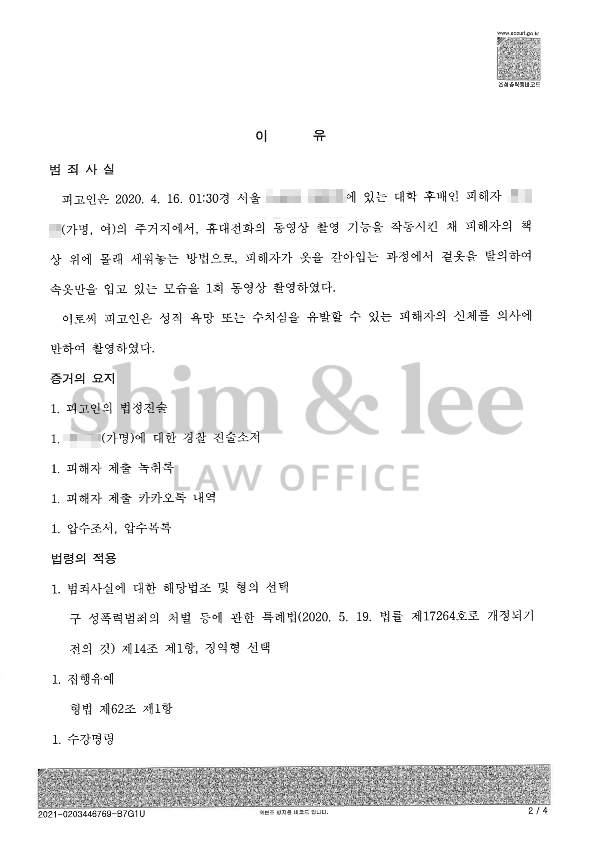 의뢰인 또한 사건 당시 동영상을 직접 삭제했고, 가해자의 핸드폰에 대한 경찰의 디지털포렌식을 통해서도 동영상이 발견되지 않았기 때문에 불리한 상황이었습니다.