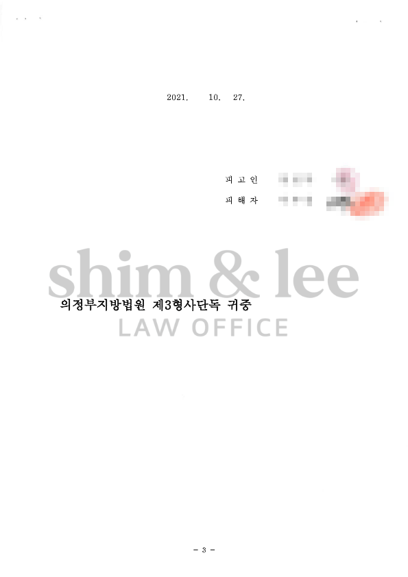 가해자가 사과하는 내용의 카카오톡 메시지와 통화녹음을 이용하여 가해자가 사실상 범행을 자백했었다는 사실을 변호사 의견서를 통해 자세히 입증하는 한편,