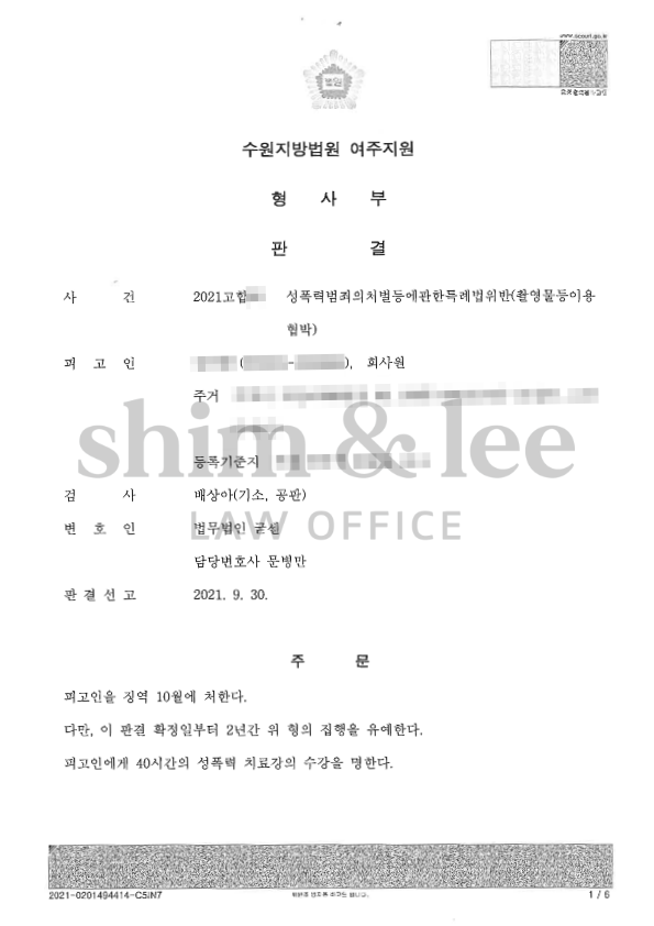 의뢰인 또한 전 남자친구인 가해자에 대한 걱정 때문에 적정한 수준에서 합의가 마무리되기를 원했고, 여기에 맞춰 합의금을 결정하고 최대한 원만한 방향으로 사건이 마무리되도록 했습니다.