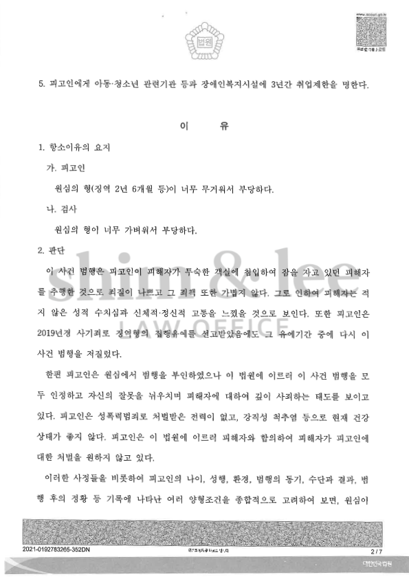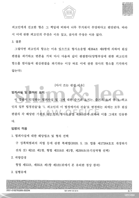 특히 가해자를 챙겨주는 가족도 별로 없는 상황에서 가해자의 국선변호인을 통해 합의해야 했기 때문에 인내심을 갖고 합의가 불발되지 않는 선에서 적정한 금액으로 조율하는 것이 관건이었습니다.
