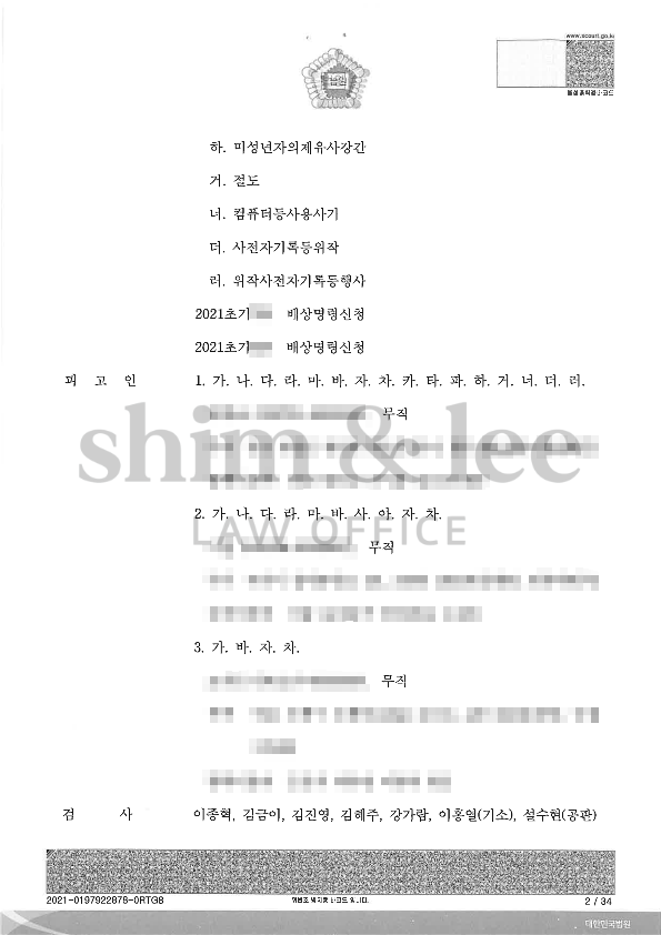 가해자들에게 적용되는 죄가 너무 많아서 경찰에서 죄명 적용에 실수를 할 위험이 있는 사건이었기 때문에 가해자들의 범죄사실과 적용되는 법령을 정리하는 내용으로 변호사 의견서를 여러 번 제출했습니다.