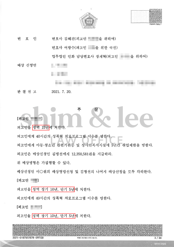 결국 21세 성인인 가해자에 대해서는 징역 15년, 나머지 고등학생인 가해자들에 대해서는 장기 10년, 단기 5년의 중형이 선고될 수 있었습니다.