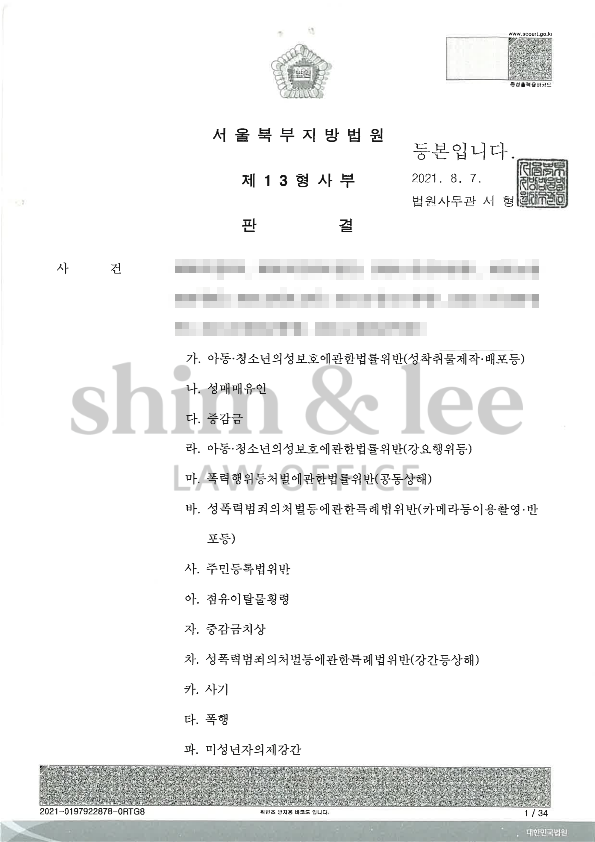 가해자들이 중한 처벌을 받기는 했지만 워낙 흉악한 사건이어서 무엇보다 의뢰인의 정신적 피해가 컸기 때문에 현재까지도 마음 아픈 사건으로 남아 있습니다.