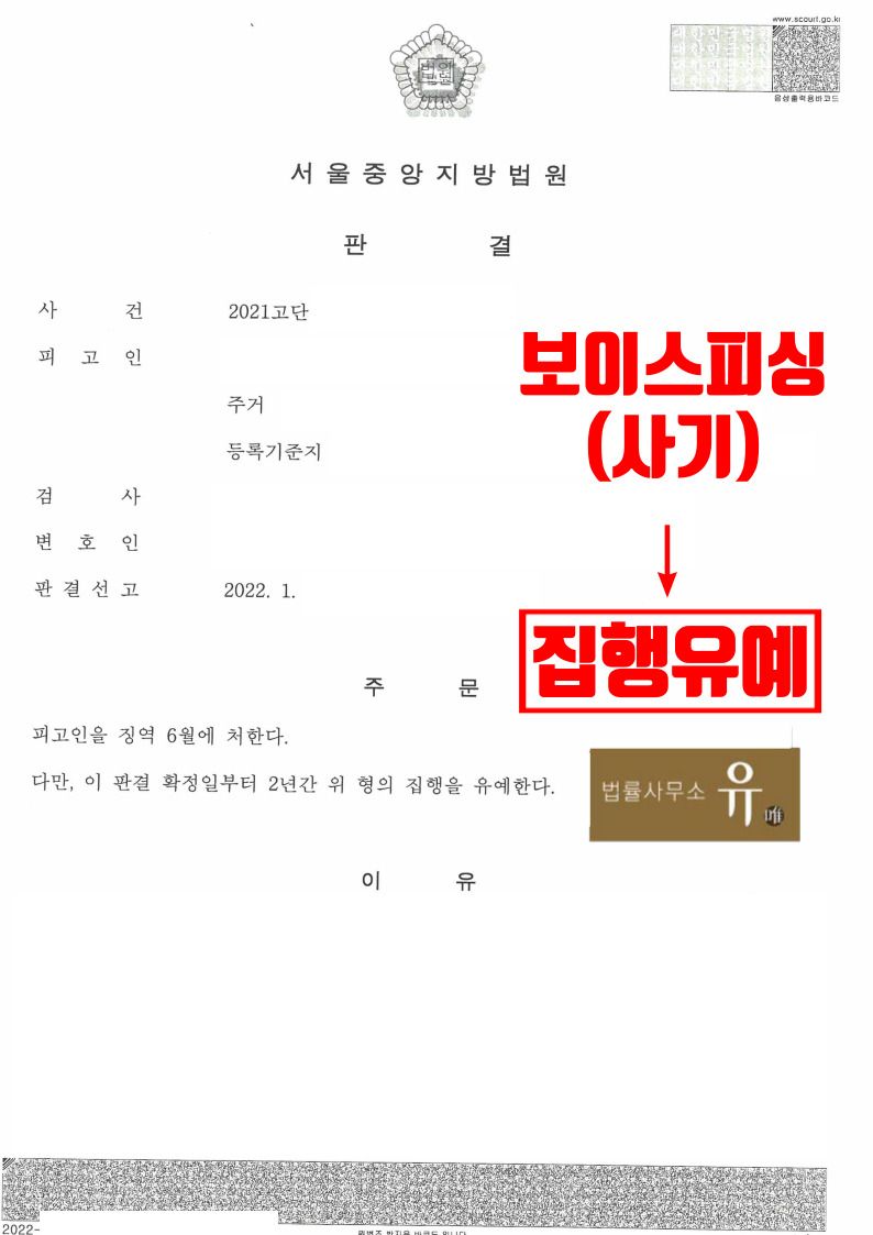 서울중앙지방법원은 법률사무소 유(唯)의 형사전문변호사가 작성하여 제출한 변호인의견서, 변론요지서와 양형자료를 참작하여 의뢰인에게 집행유예를 선고하였습니다.