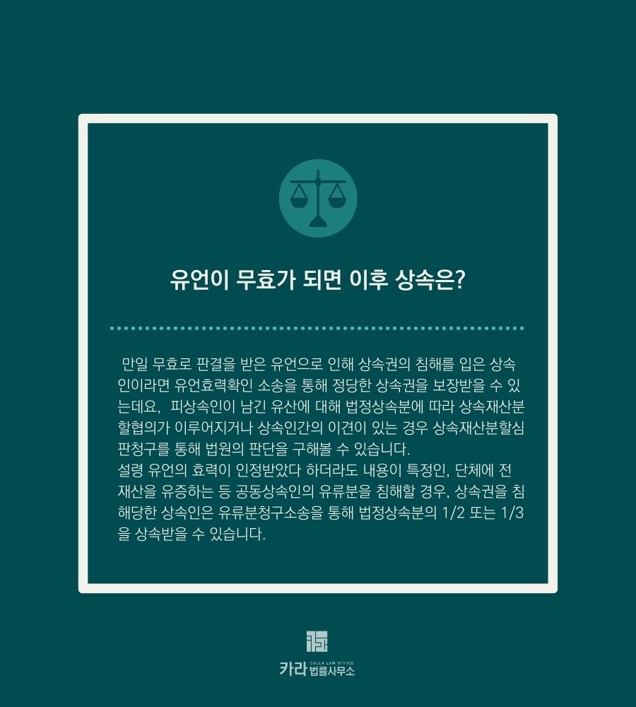 만일 무효로 판결을 받은 유언으로 인해 상속권의 침해를 입은 상속인이라면 유언효력확인 소송을 통해 정당한 상속권을 보장받을 수 있는데요,