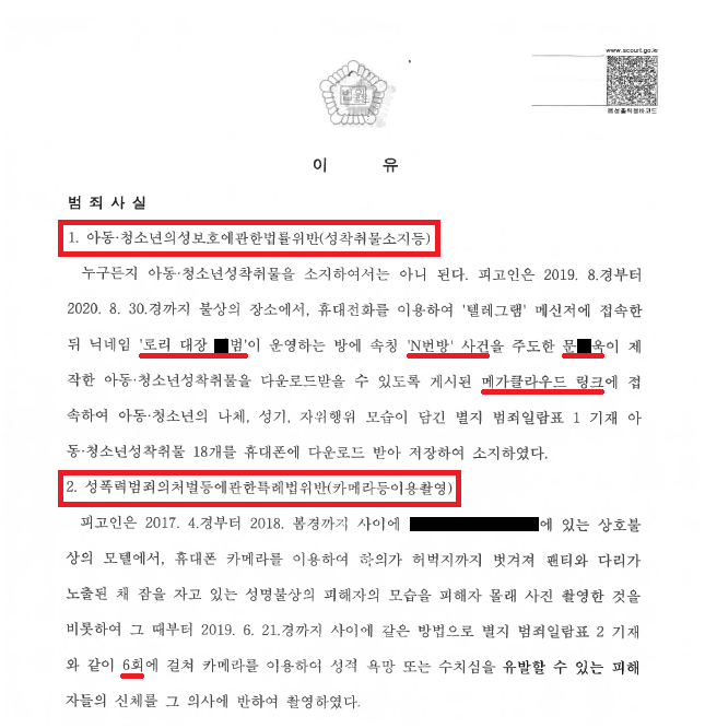 ![[성착취물소지, 카메라등이용촬영] 로리대장 태○, 문형○(갓갓)](/_next/image?url=https%3A%2F%2Fd2ai3ajp99ywjy.cloudfront.net%2Fuploads%2Ftitleimage%2Foriginal%2F5b2ded9a0272983c05cf2c5f-original.jpg&w=3840&q=75)