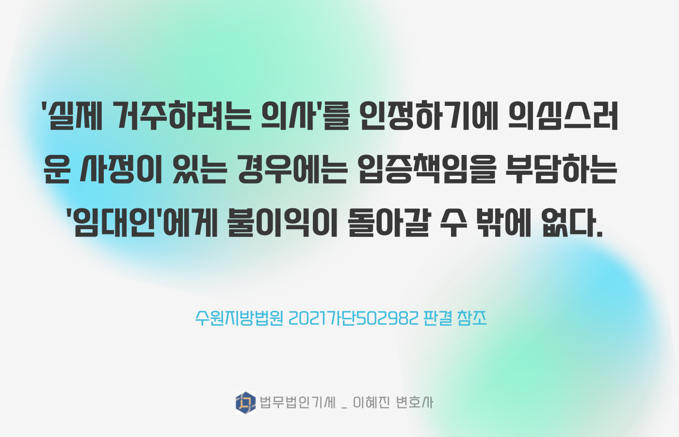 그러나 최신 판결 중 유사 사안에서 실거주 목적 입증책임이 임대인에게 있다고 보아 임차인이 승소한 판결도 있습니다.