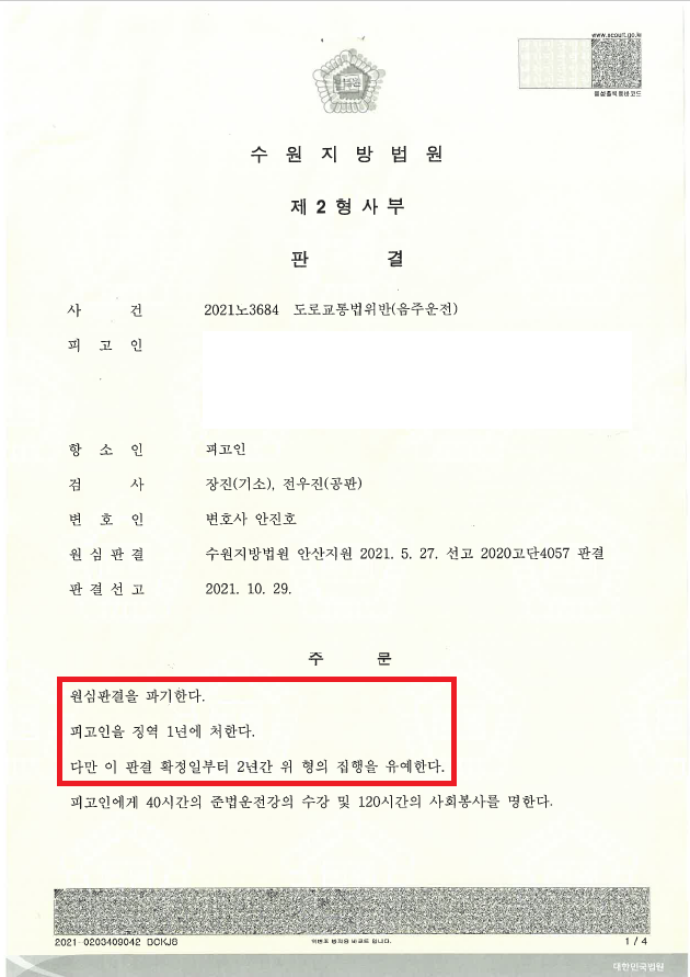 피고인은 징역형의 집행유예를 포함하여 4회의 동종전과가 있었고, 이에 사고가 발생하지 않은 단순 음주운전임에도 불구하고 원심에서 징역 1년을 선고받아 법정구속된 상황이었습니다.