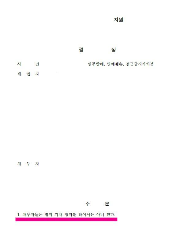명예훼손금지가처분, 접근금지가처분, 업무방해금지가처분 사건에서 승소한 사례입니다