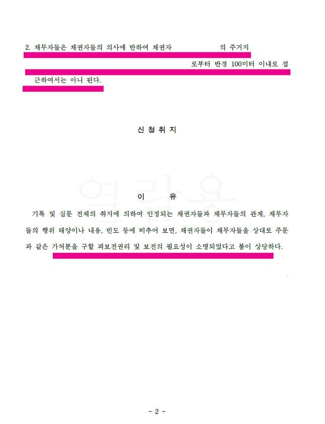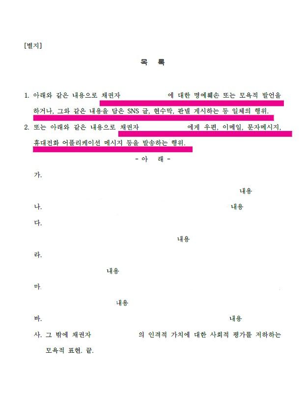 명예훼손행위, 부당한 접근행위가 계속되었기에 신속하게 가처분을 신청하였습니다.