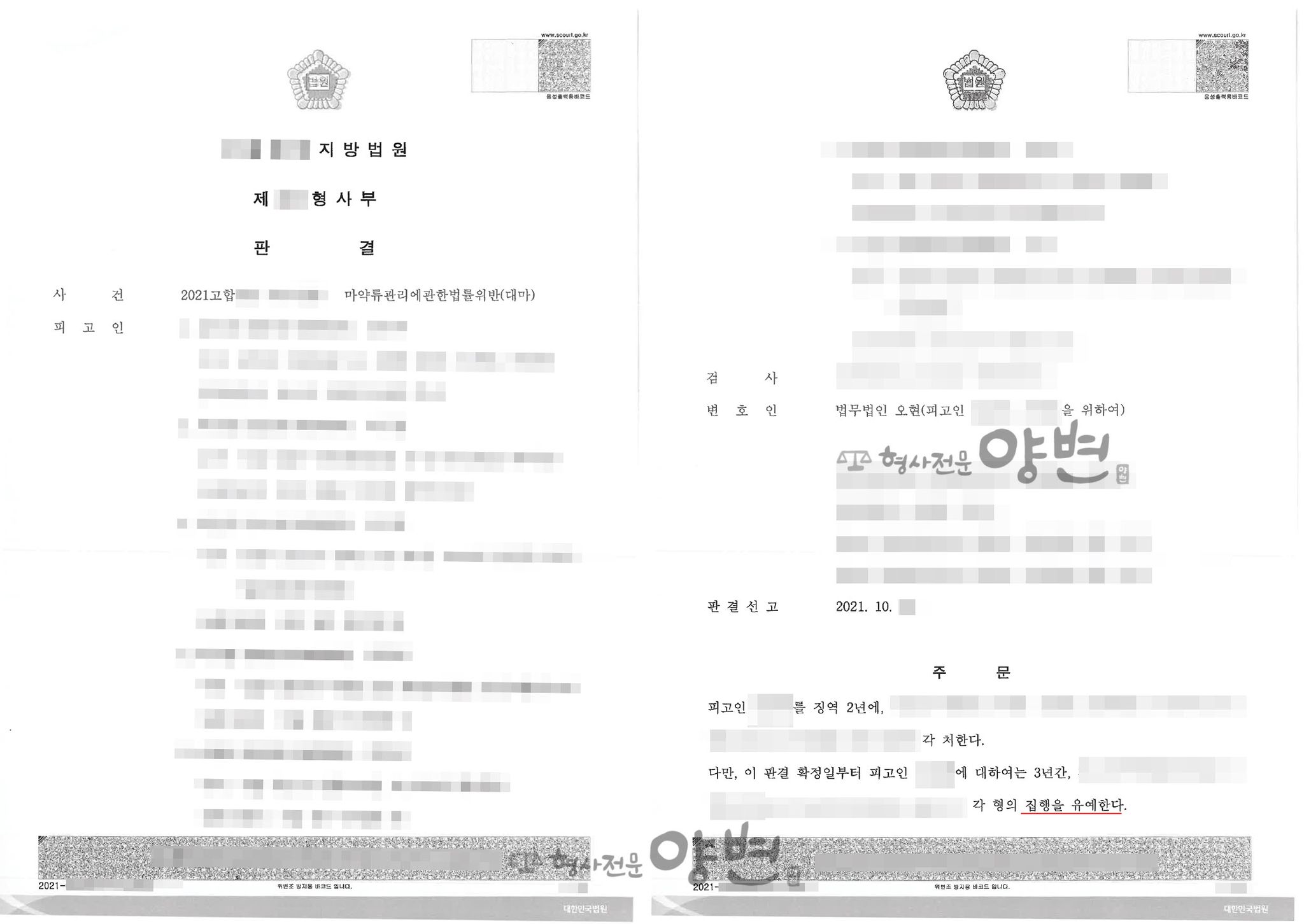 마약류를 대량으로 구매하거나 오랜기간 구매와 흡연(투약)을 반복한 경우에는 이미 마약류에 대한 의존성과 중독을 이유로 징역형에 처하는 경우가 대부분입니다. 그럼에도 이 사건은 혐의사실 중 실제로 구매하고 흡연한 대마의 양을 밝히는 한편, 그 의존성이 없음을 적극 호소함으로써 징역형의 집행유예를 선고를 받았다는 점에서 의미가 있다 하겠습니다.