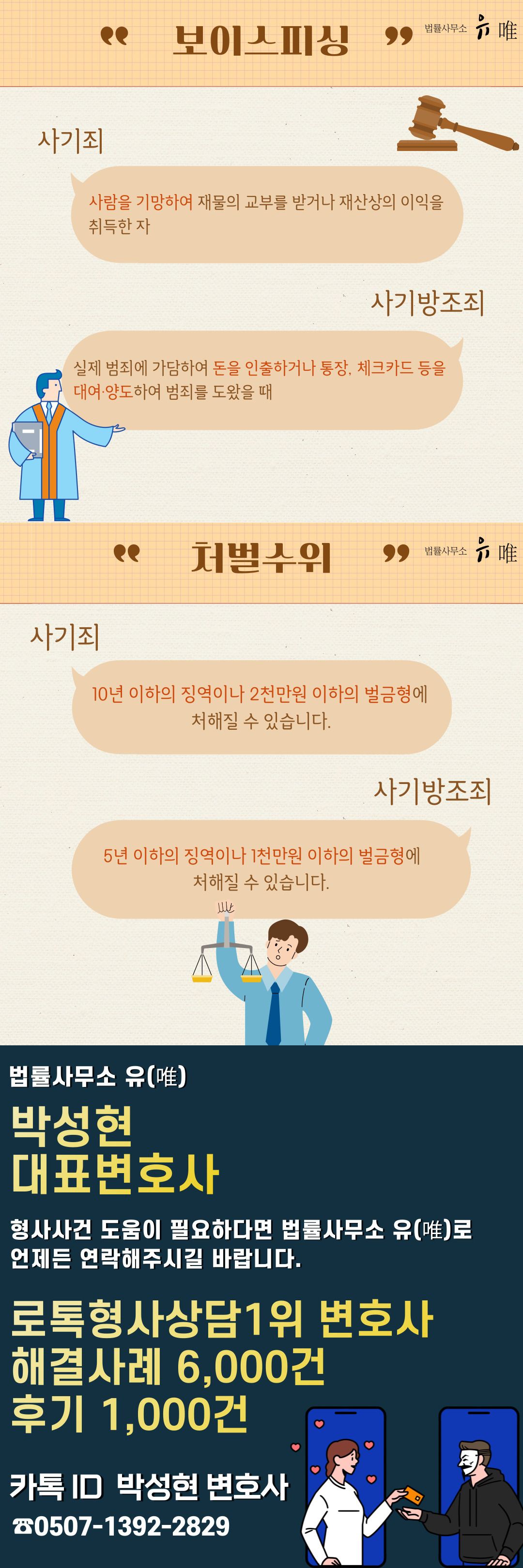 법률사무소 유(唯)의 형사전문변호사는 의뢰인과 신속한 상담을 진행하여 의뢰인이 범행에 이르게 된 경위와 범행 당시의 정황 등 사건내용을 파악한 후 의뢰인에게 유리한 양형자료를 최대한 수집, 확보하고 외국 국적의 의뢰인이 보이스 피싱 범죄를 전혀 인식하지 못한 상태에서 범행에 이르게 되었다는 점과 범행을 통해 취득한 이익이 소액이라는 점 등을 강조한 변호인의견서 등을 양형자료와 함께 제출하였습니다.