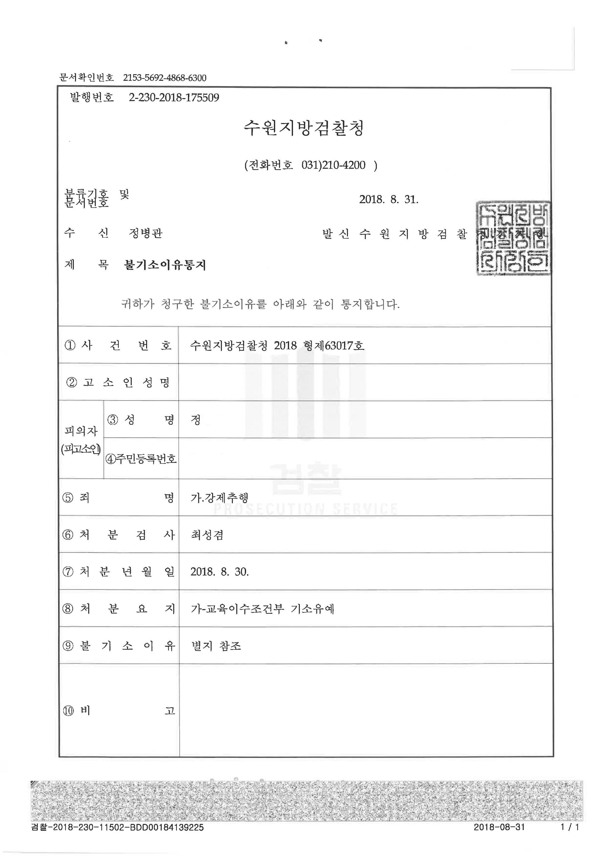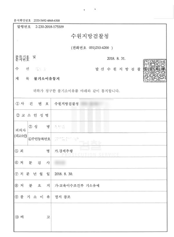 기소유예란 쉽게 말해 검사가 법원에 기소를 하지 않고 유예하는 것으로, 교육이수 조건부 기소유예란 말 그대로 교육이수를 조건으로 검사가 기소를 하지 않고 사건을 종결시켜 재판에 회부하지 않는 것을 의미합니다.