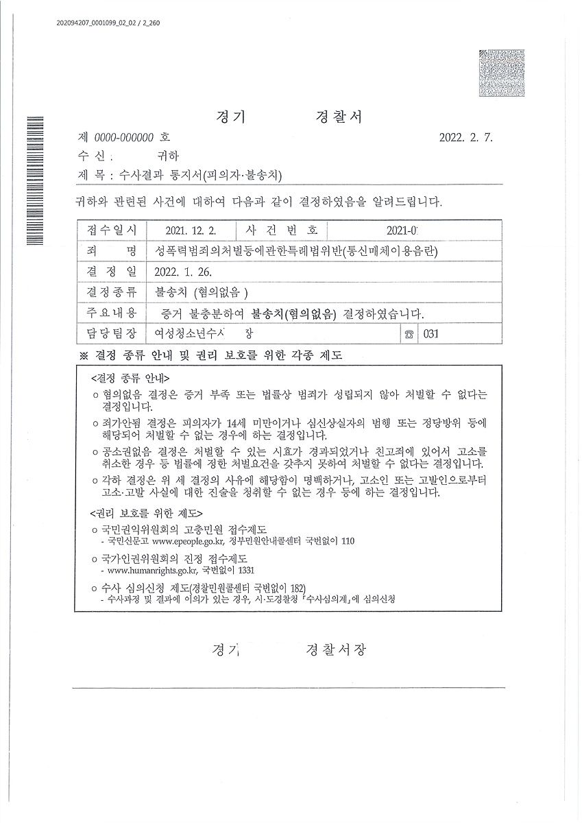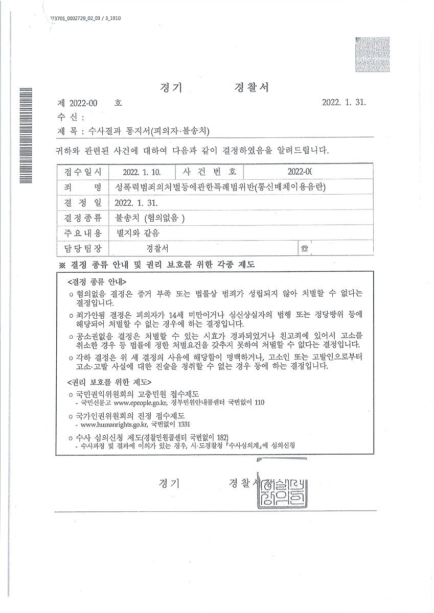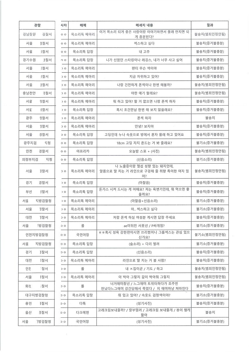 1. 성폭법 통매음 다톡 성기사진 전송 불송치