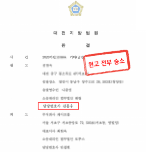 재판부는 김동우 변호사의 법리적 주장 및 관련 입증자료를 기초로, 의뢰인과의 부동산 투자계약의 상대방은 투자를 담당한 임원 개인이 아니라 법인임을 인정하여, 법인이 투자금 전부를 변제하라고 원고 전부 승소 판결을 명하였습니다.