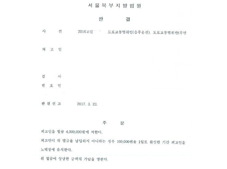 이 사건의 피고인은 음주운전 사고로 재판을 받고 있는 중에 또 음주운전 및 무면허운전을 하여 사실 엄벌이 예상되었는데 재판부에서 마지막으로 한 번 벌금형 선처를 내려준 사안입니다.
