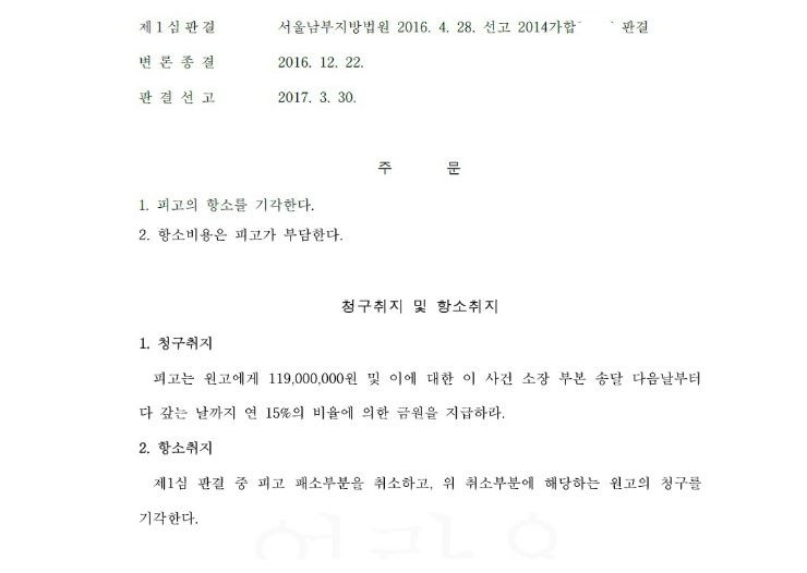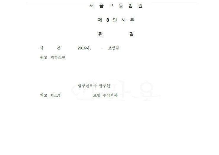 결국 재판부는 이 사건의 경우 1심과 같이 고지의무위반 사실과 보험사고인 사망 사이에 인과관계가 없다고 보아, 비록 망인인 원고의 남편이 생명보험 가입 당시 간질환 입원사실을 고지하지 아니하였더라도 상속인인 원고는 피고회사에게 사망보험금의 지급을 구할 수 있다고 판단하였습니다.