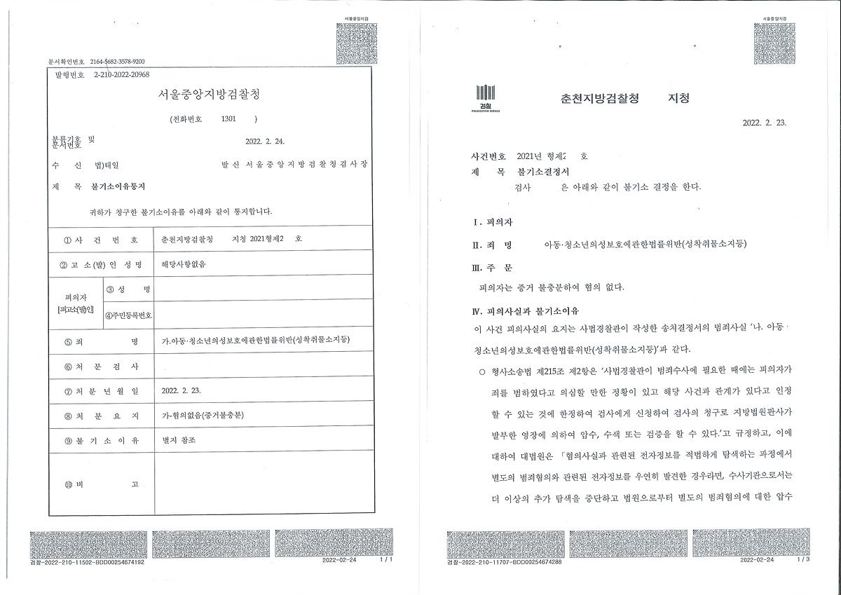 제가 사건이 많아 일을 대충한다거나 신경을 잘 써줄 수 없다는 말을 하는, 다른 변호사를 포함한 사람들이 있으나 이런 말의 출처는 제 의뢰인들이 아닙니다. 제 의뢰인들은 너무나 열심히 해줘서 감사하다는 말을 하고 있지 불만을 표하는 사람은 없습니다. 위 사안에서도 개정법인 성착취물소지죄에 대하여 불기소 받는 것에 별도의 약정이 있었던 것도 아니었습니다. 압수물에서 아청물이 발견된 이상 대부분의 변호사들은 저처럼 노력해서 어떻게든 개정법 성착취물소지죄의 적용을 피하려고 연구와 노력을 하지 않는 것이 현실입니다. 옆에서 가만히 조사에 입회하면서 한 마디 말도 하지 않고 반성문이나 쓰라고 하고 법정에 나가서 잘못했다 선처해달라는 식의 변호가 상당수라는 것은 실제 변호를 받아본 사람이라면 공감할 것입니다.