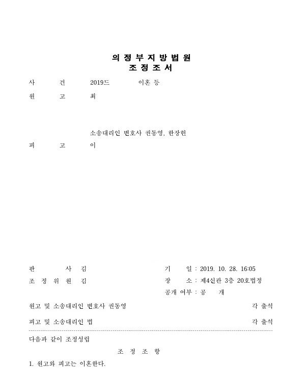 위 사건은 이혼사건으로 조정을 통해 이혼을 성립하게 된 사건입니다.