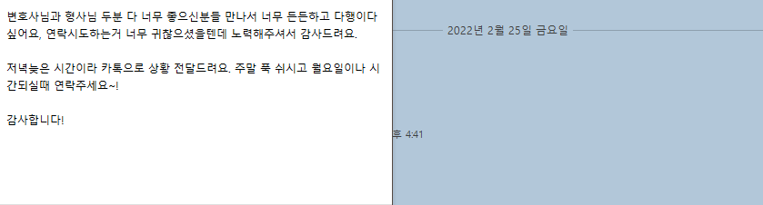 의뢰인분도 조사가 마친 후 너무나 감사해 하셨습니다.
