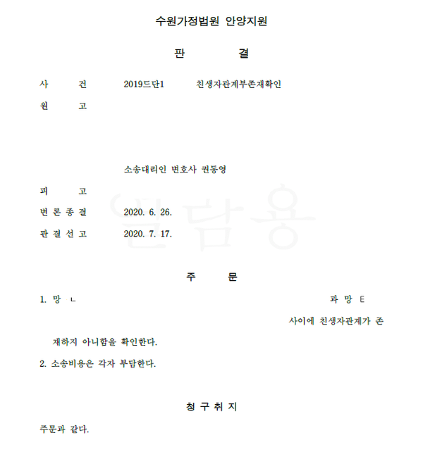 ![[가사]친생자관계부존재확인의 소를 통해 혈연관계 미성립을 확인](/_next/image?url=https%3A%2F%2Fd2ai3ajp99ywjy.cloudfront.net%2Fuploads%2Ftitleimage%2Foriginal%2F5c8d25566e0ad7c9b5c6b681-original.jpg&w=3840&q=75)