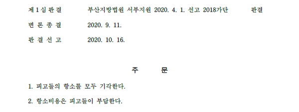 피고(항소인)들은 위 사건에서 패소판결은 받은 후 항소심을 제기하면서 사건이 진행되게 되었습니다.