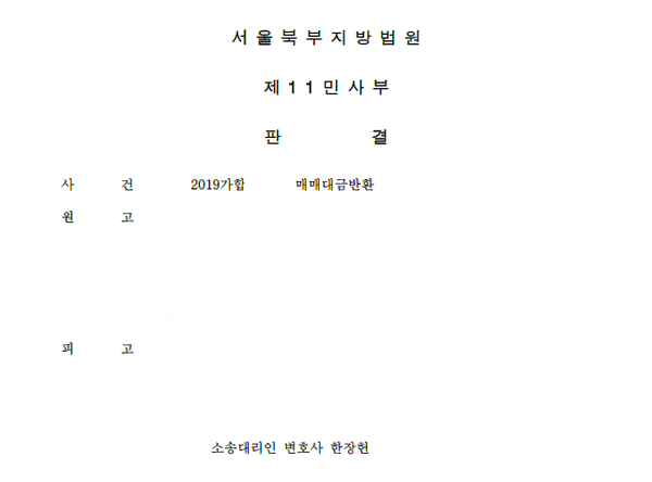 의뢰인 A씨(피고)는 2018. 9. 경 상대방 B씨에게 서울 노원구 소재에 있는 아파트(이 사건 아파트)를 6억 3,500만 원에 매수하는 계약을 체결하였습니다.