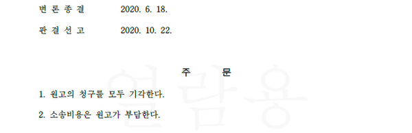 사건이 진행되면서 원고는 법원에 이 사건 아파트에 대한 재감정을 요구하는 등 과정을 거치게 되었는데, 감정 결과 원고가 주장하는 하자부분에 대해 누수 및 결로 현상이 없다는 결과가 나오게 되었고, 재판부는 결국 원고 청구 기각 판결을 내리게 되었습니다.