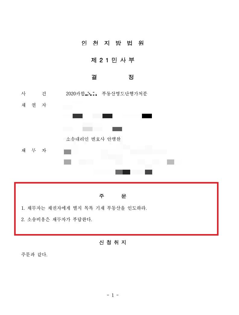 명도단행가처분 신청 인용받아 의뢰인은 3달 안에 임차 건물에 대해 인도를 받았습니다.