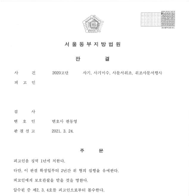 또한 저희는 의뢰인(피고인)의 양형사유에 대한 주장을 심도있게 펼쳤으며, 피해자들에 대한 사과와 보상 역시 최선의 결과를 얻을 수 있는 방법으로 진행하였고 이러한 점도 재판부에 강조하면서 피고인의 선처를 구하였습니다. 이에 법원은 피고인에게 징역 1년에 집행유예 2년의 판결을 내렸습니다.