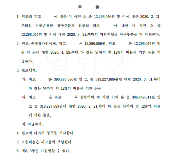 재판부는 위와 같은 상황을 판단하여 원고의 청구를 인용, 청구금액을 인정하는 판결을 하였습니다.