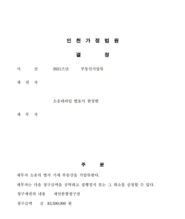 이혼에 따른 재산분할청구권에 기초하여 부동산, 예금 등에 대한 가압류 또는 가처분을 희망하시는 분은 주저하지 마시고 편하게 연락주시기 바랍니다.