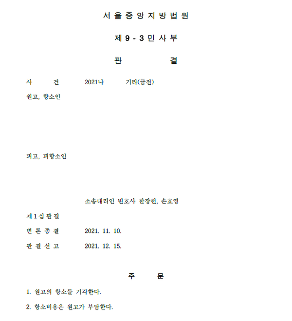 의뢰인 A씨(피고, 피항소인)는 2심도 윈앤파트너스 법률사무소와 함께 사건을 이어나갔습니다.