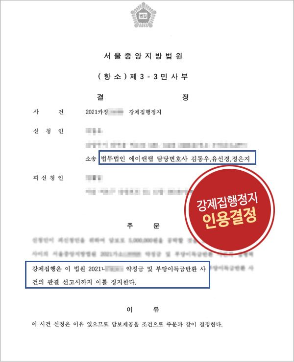 ![[민사소송] 투자금반환 강제집행청구, 집행정지 신청 인용 결정](/_next/image?url=https%3A%2F%2Fd2ai3ajp99ywjy.cloudfront.net%2Fuploads%2Ftitleimage%2Foriginal%2F5b164e342320ecd6d305030c-original.jpg&w=3840&q=75)
