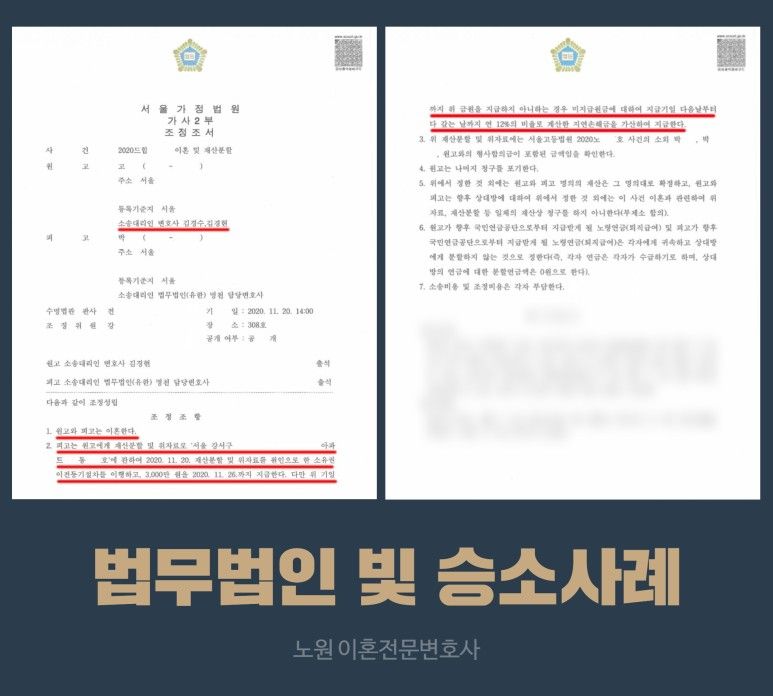 6억 원 이상의 재산분할, 위자료 3천 만원을 받을 수 있게 도움을 드렸던