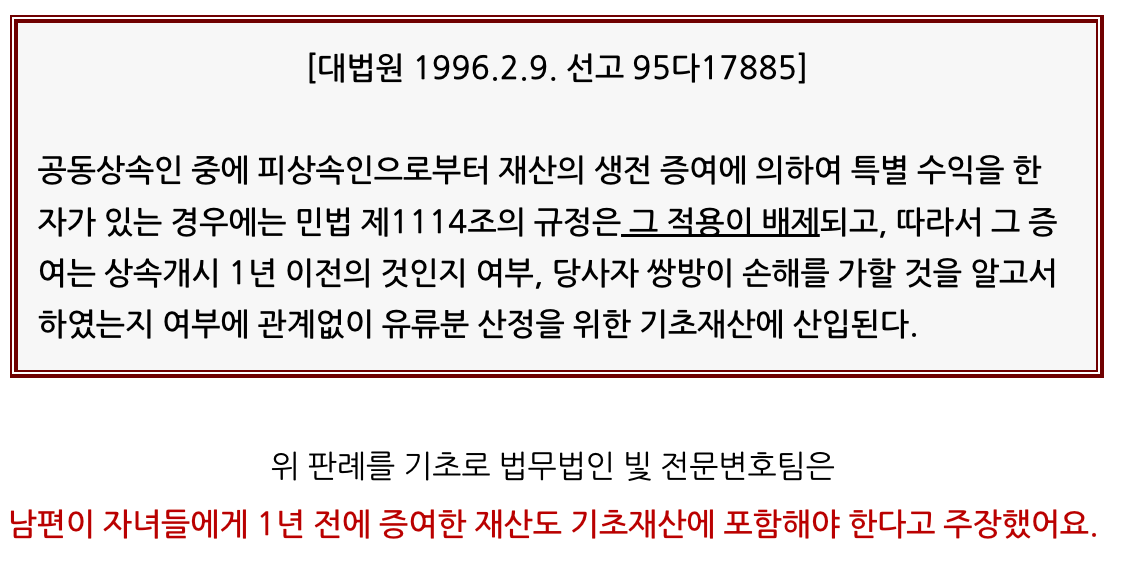 단순하게 규정이 적용될 경우 의뢰인이 유류분을 주장할 수 없게 될 수도 있었죠.